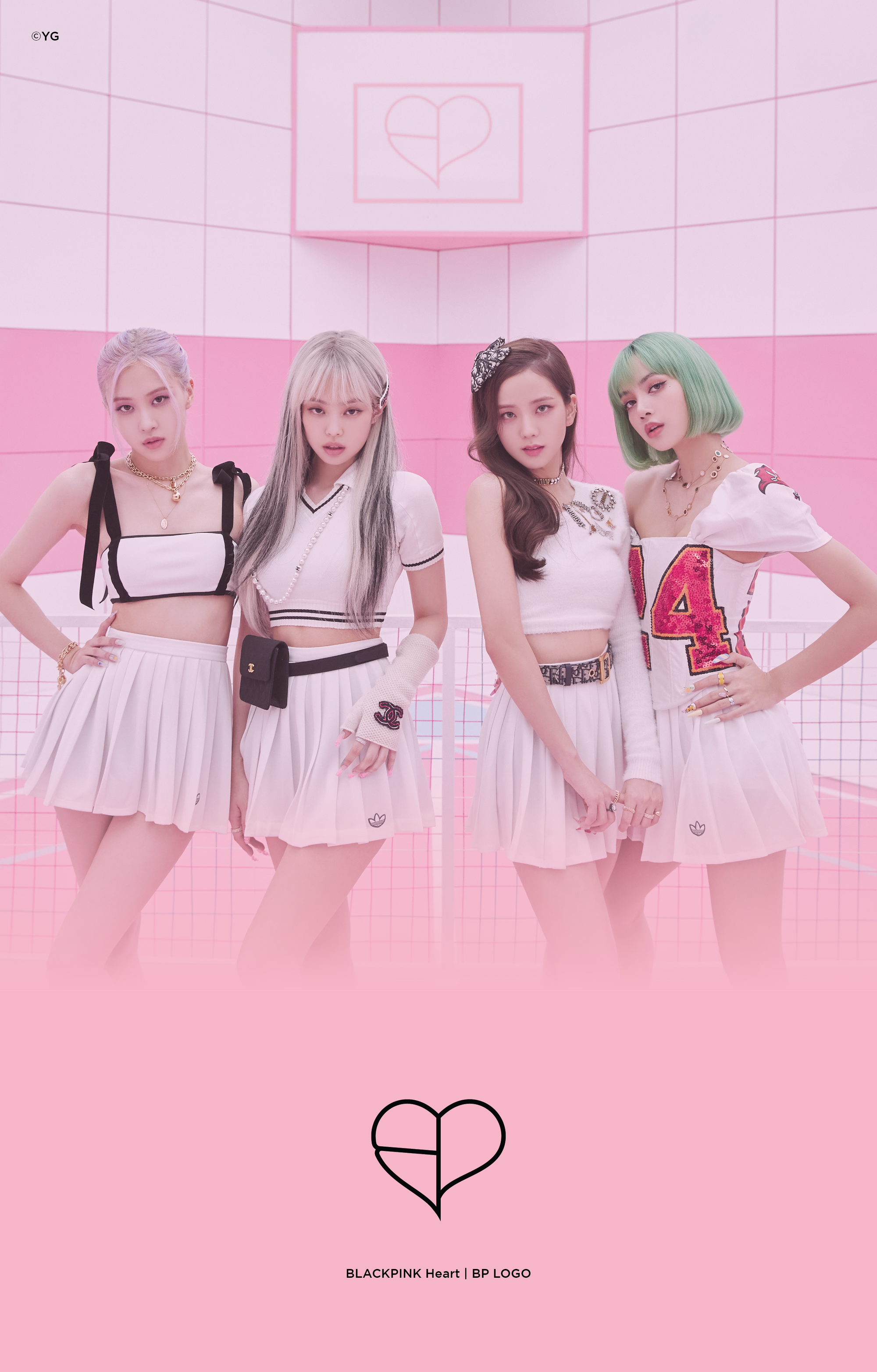 'B'와 'P'의 조합으로 만든 하트는 블랙핑크의 다양한 매력, 블랙과 핑크의 상징적인 모습을 은유적으로 표현하였습니다.